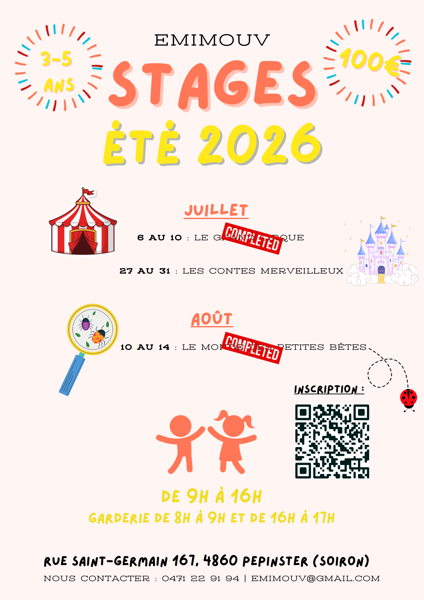 ⚠️ Le nombre d'inscrits est limité ! Veuillez attendre le mail de confirmation (MAX 72H) d'Emimouv validant la participation de votre enfant.